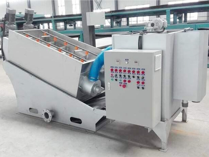 1、 脫水機(jī)的主體是由固定環(huán)和游動環(huán)相互層疊,螺旋軸貫穿其中形成的過濾裝置,前段為濃縮部,后段為脫水部。