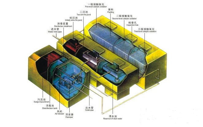 反應(yīng)池采用了生物觸氧化法,僅需三個(gè)月(90天)左右排一次泥(用糞車抽吸或脫水成泥餅外運(yùn))。